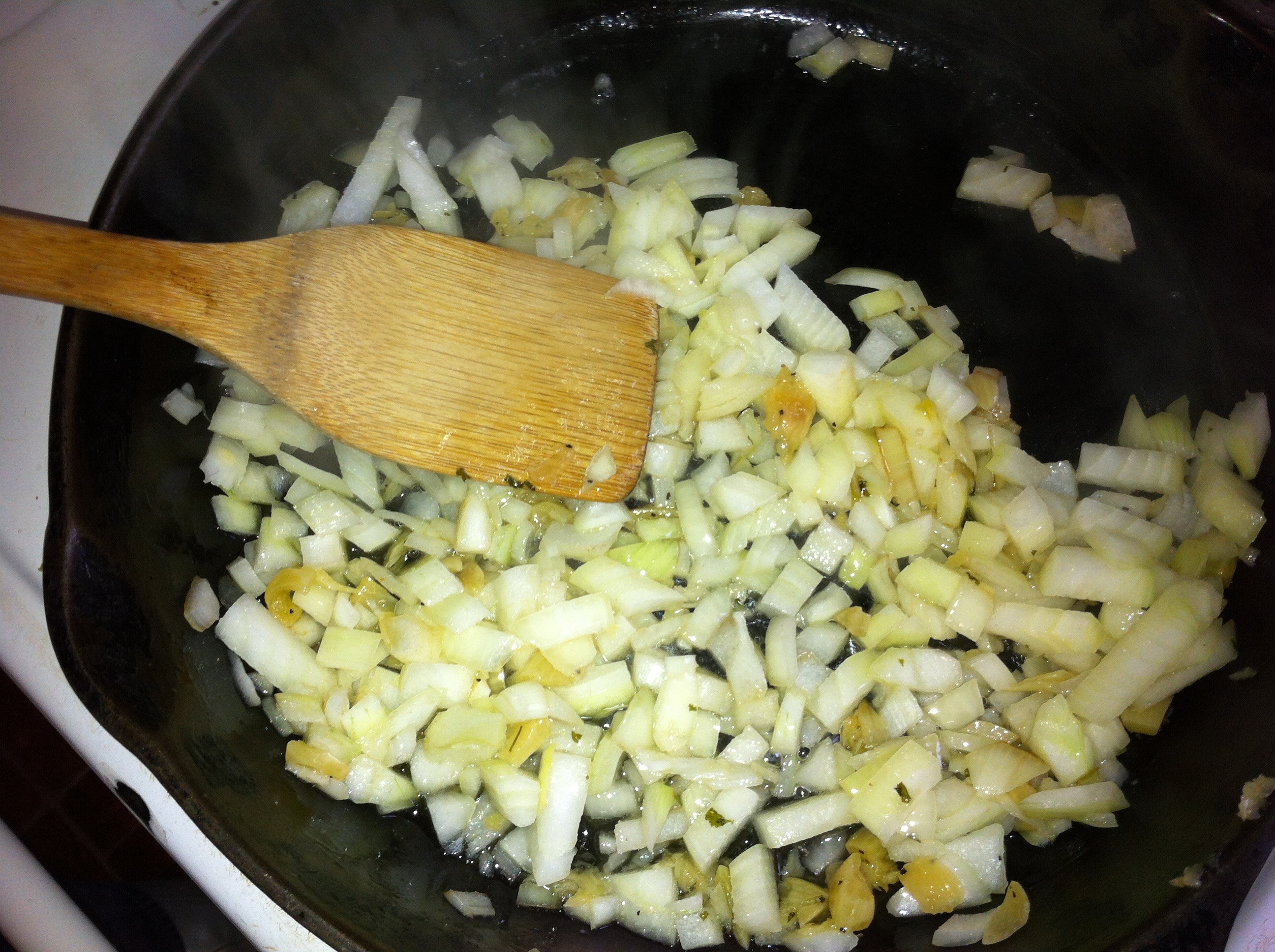 *Add onions and garlic to skillet, season with fresh cracked pepper, and saute until a golden brown color.