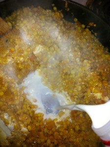 *Add about 1/4 c of milk to pan to “de-glaze” the bottom of the pan and to make mixture not so thick. Feel free to use a little bit more, or a little bit less as necessary.