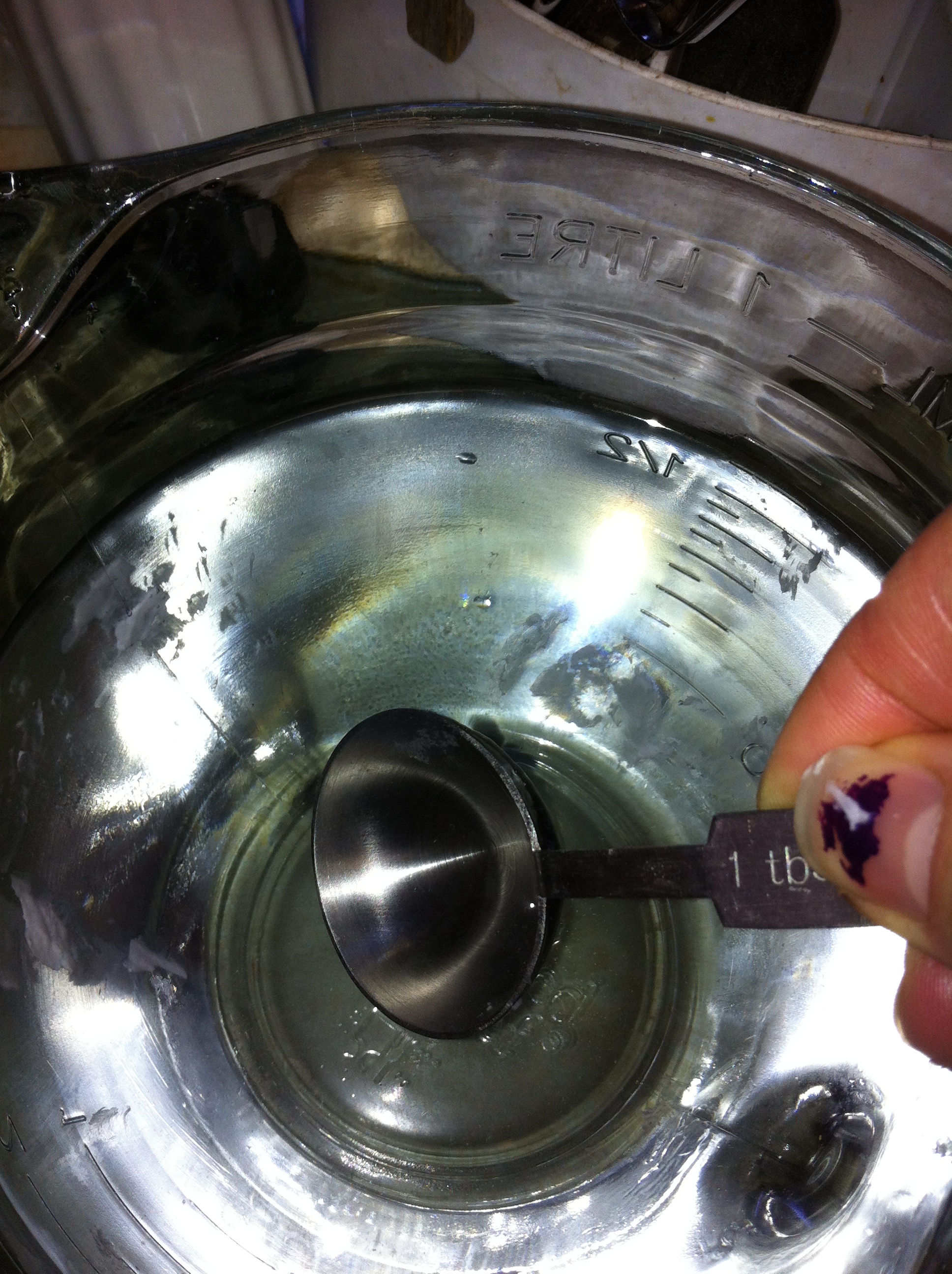 Because there was 2 2/3 c of water, when I added 1 1/3 c of shortening it raised the water line to the 4 cup mark.
