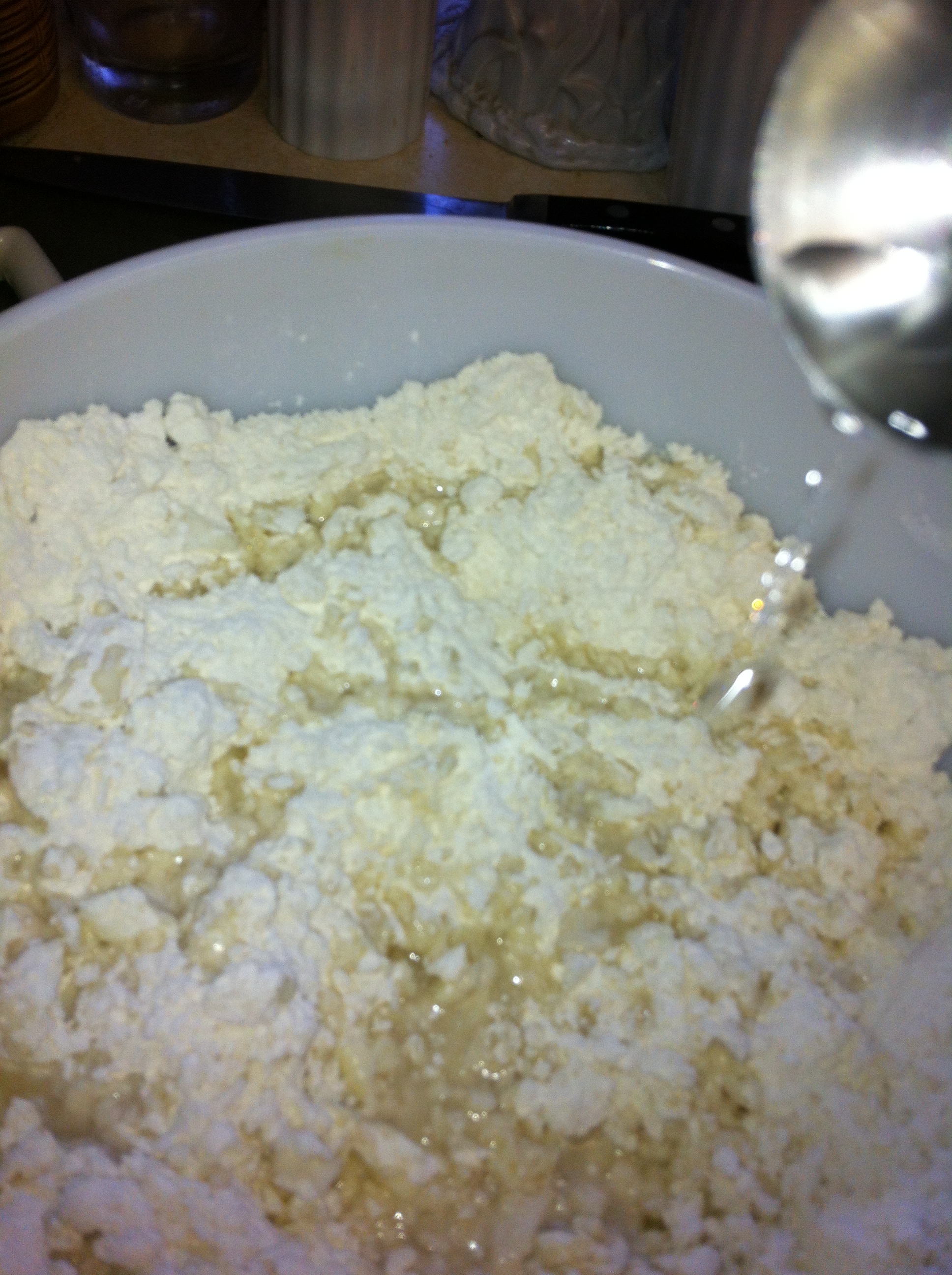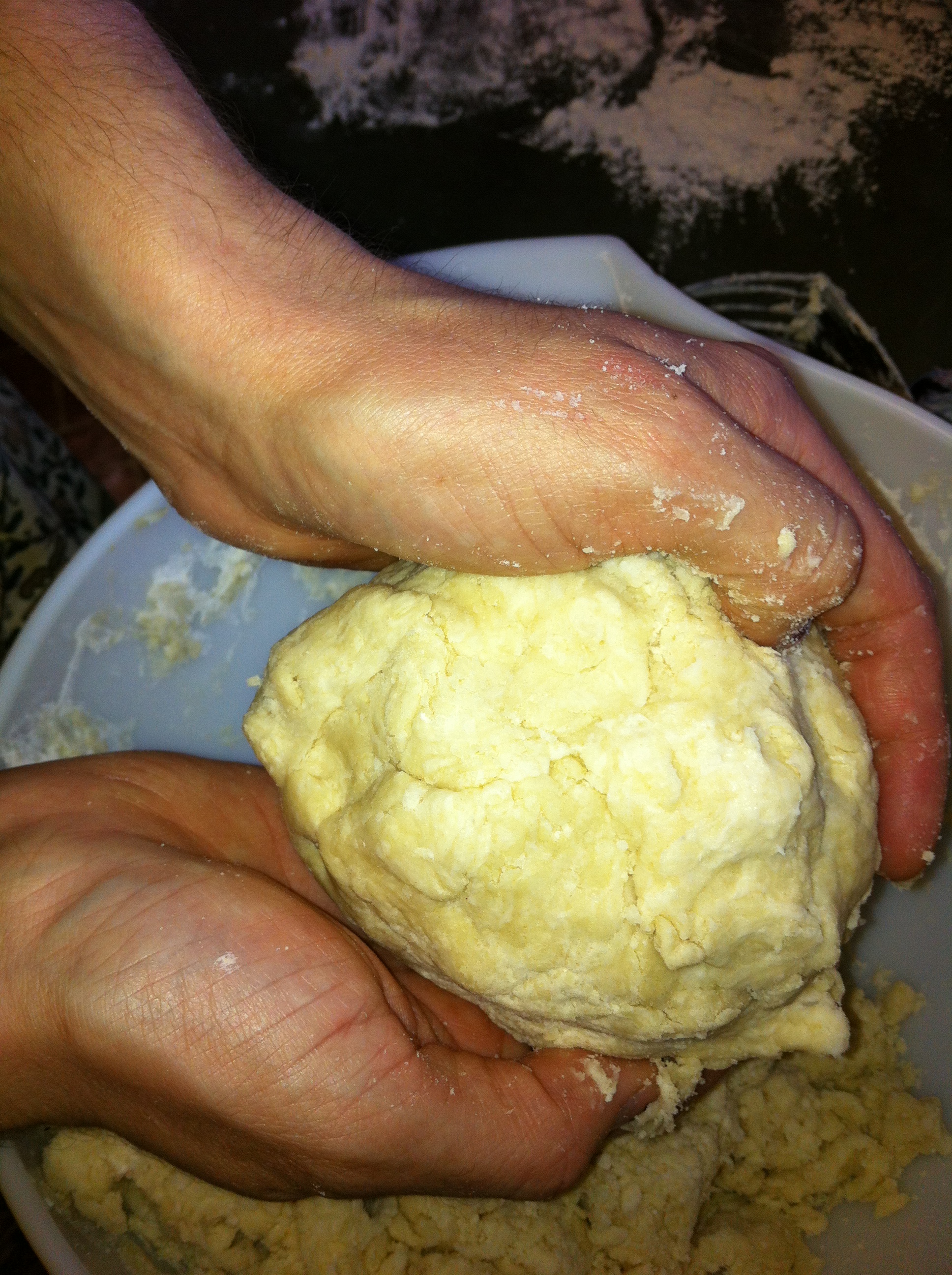 *Sprinkle in 1 T at a time, tossing lightly with a fork in between, until the dough starts to come together and there isn’t a lot of dry flour left at the bottom of your bowl.