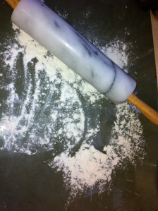 *Now it is time to roll out these guys out! Don’t start sweating now, you’ll be okay! Start by grabbing your rolling pin and flouring {a clean} countertop.