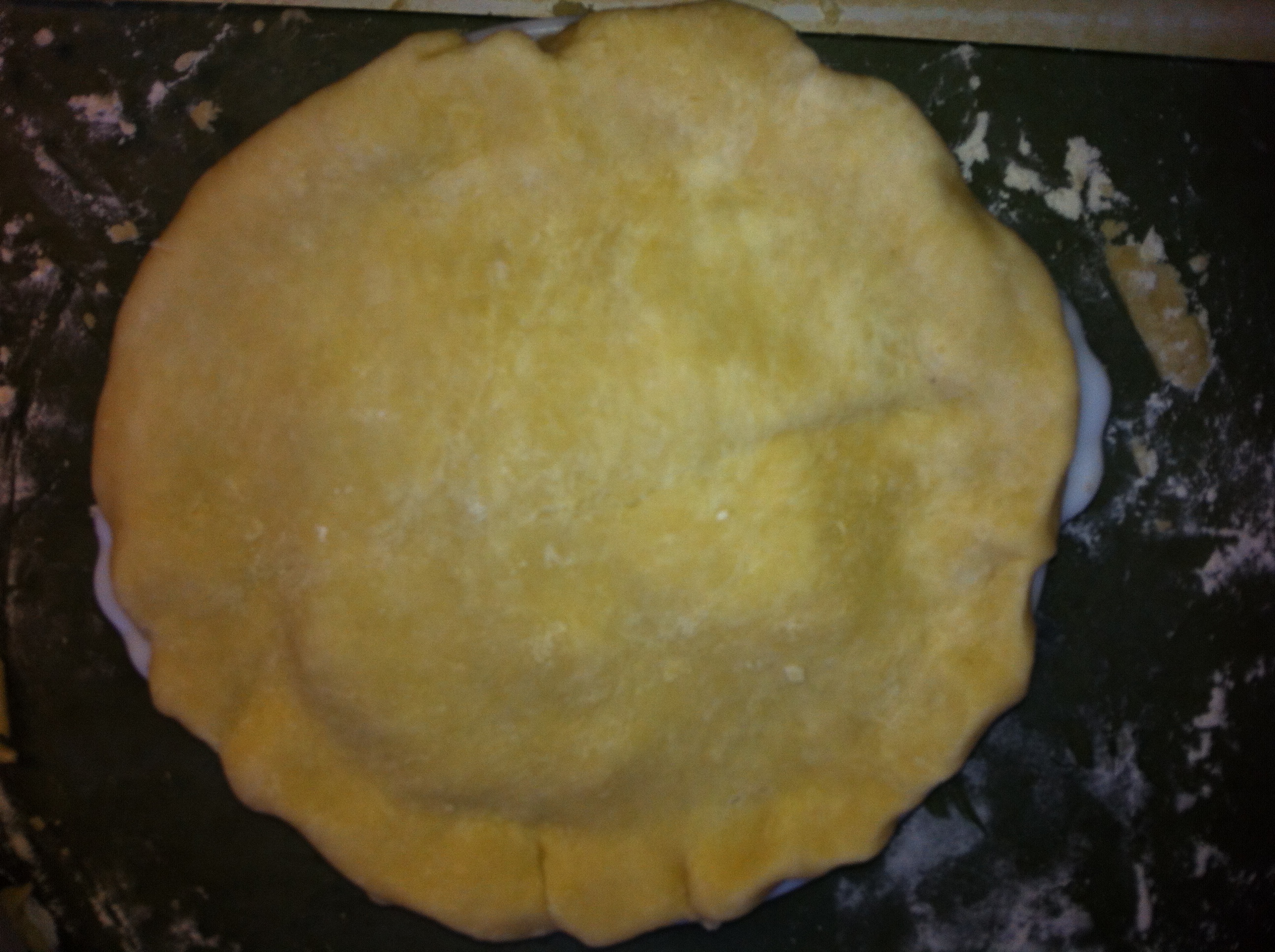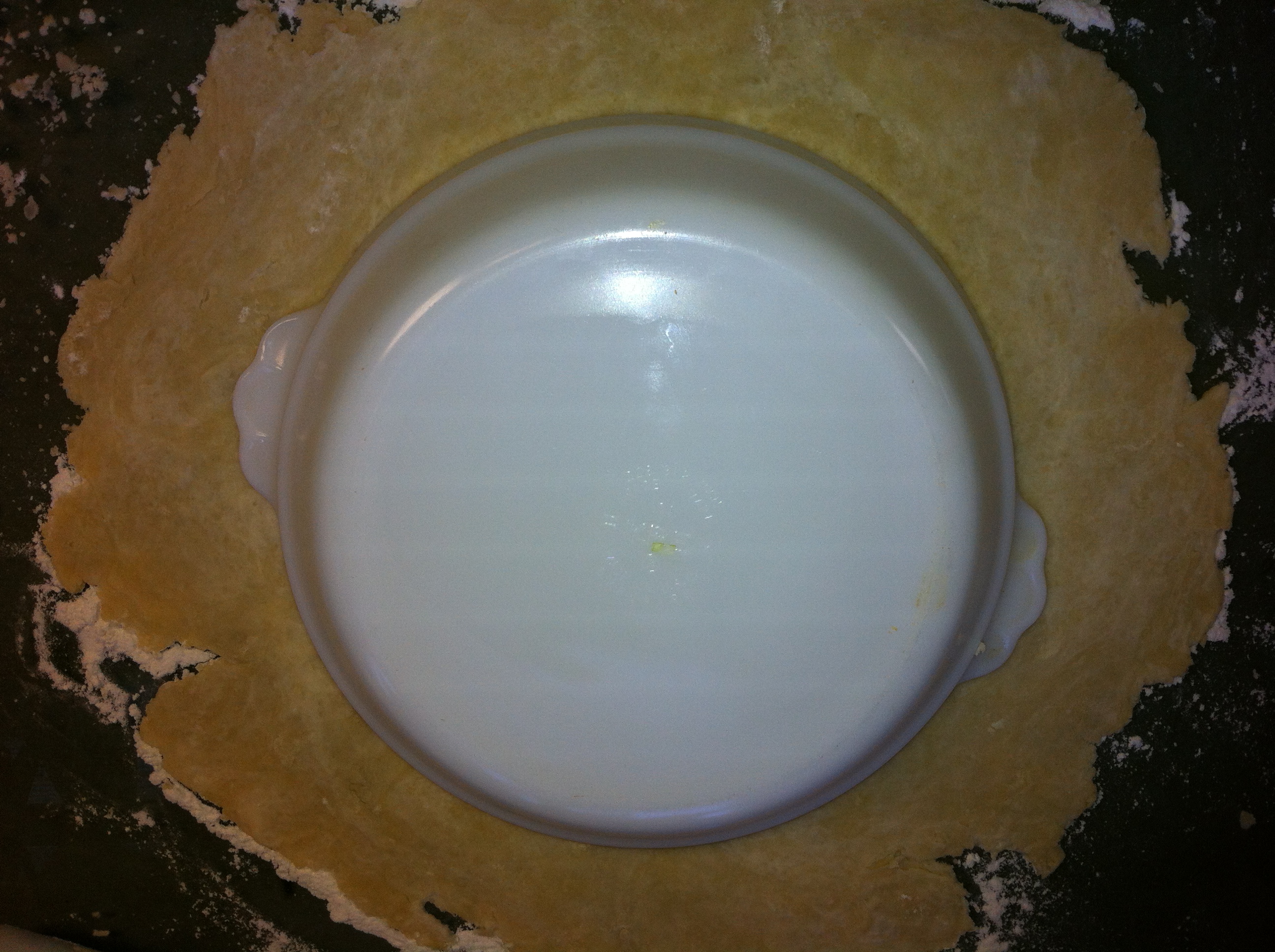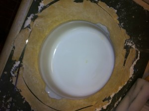 *Once you have the dough rolled out turn your pie plate over on top to make sure there is enough dough to cover the inside completely with enough of an edge to fold to make the outside crust.