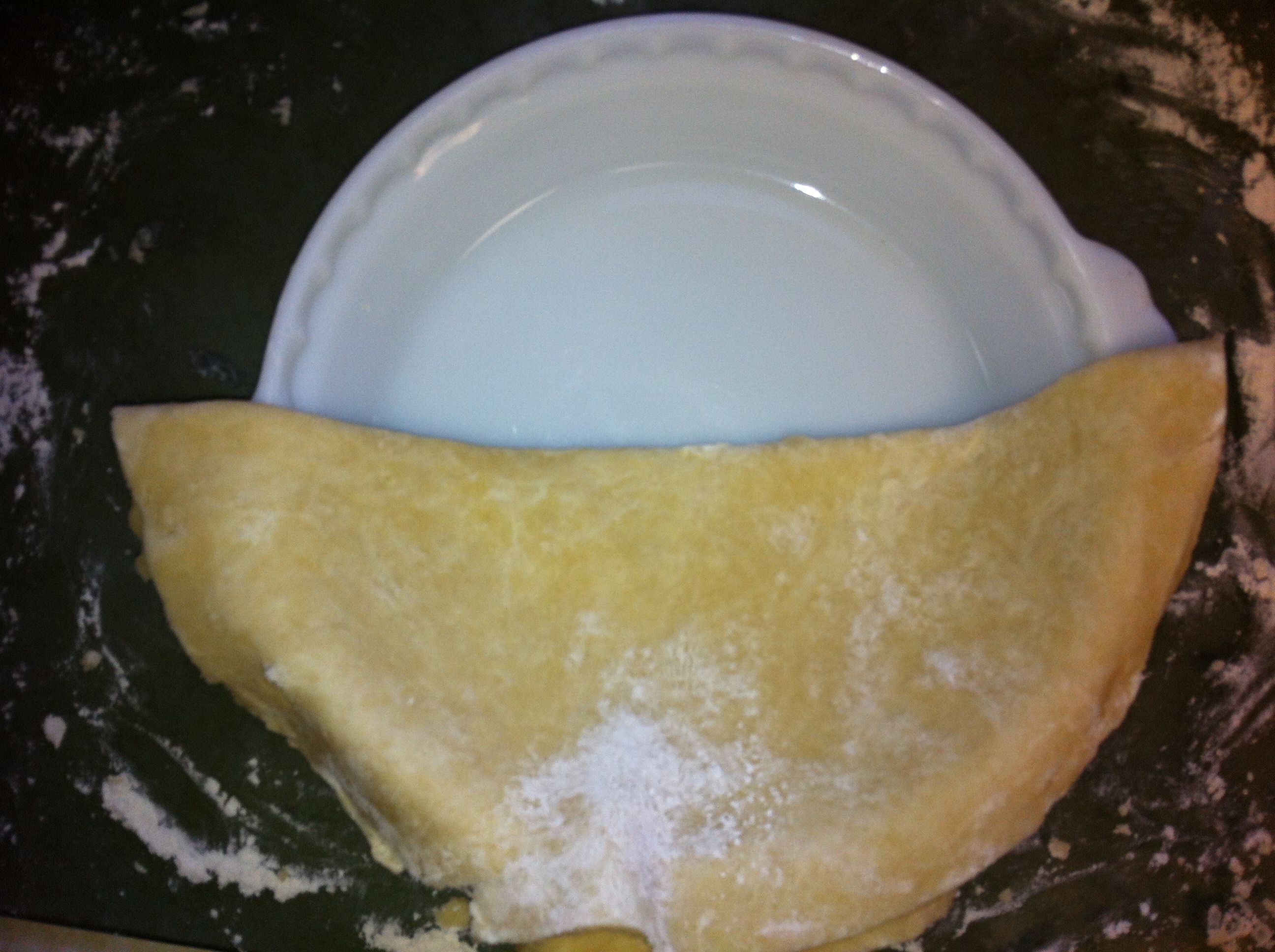 *Move pie plate off. Fold dough in half.