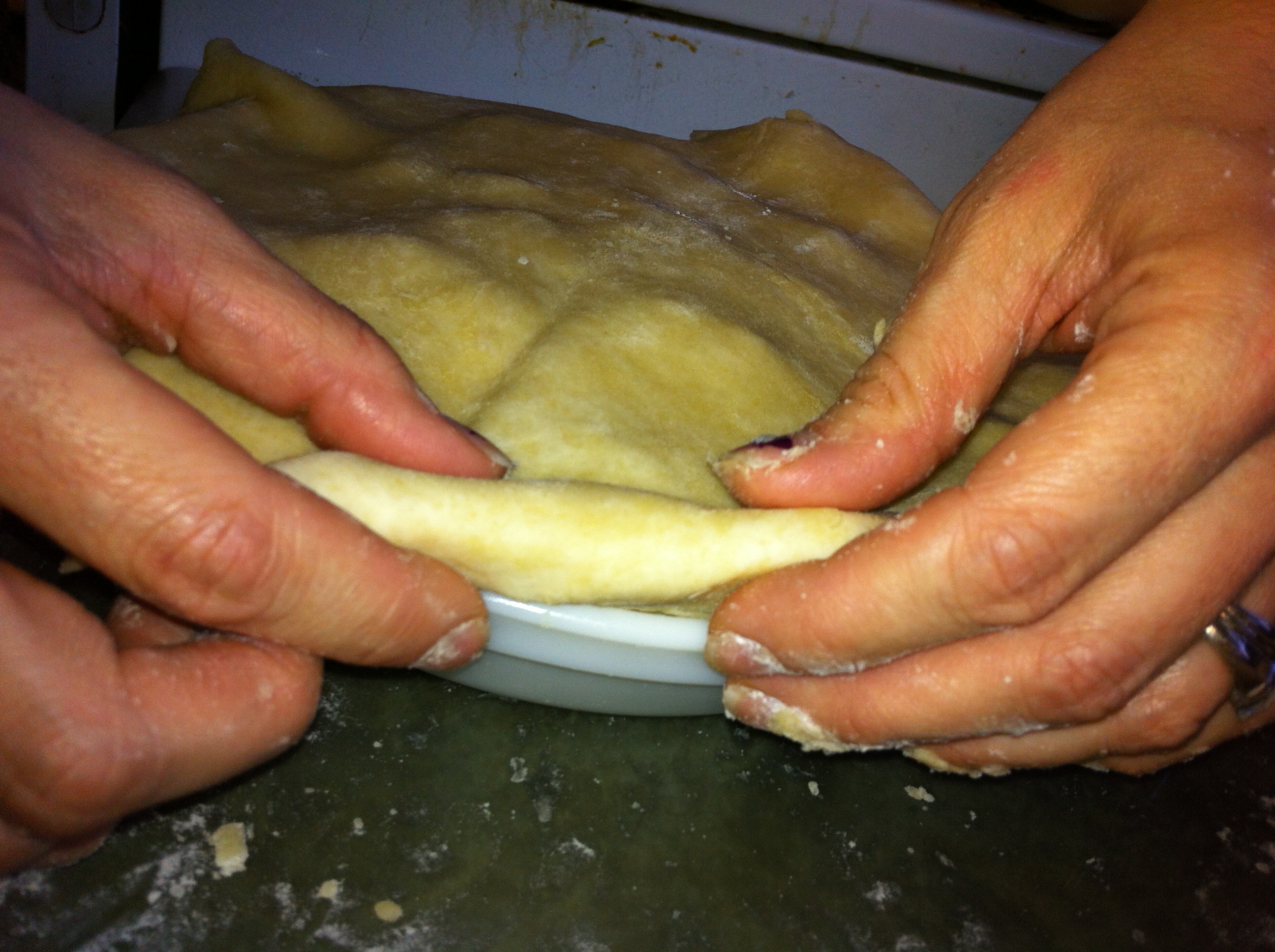 *Place quartered dough in one quarter section of the pie plate.