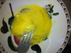 *Mix the egg and water together with a whisk or a fork.