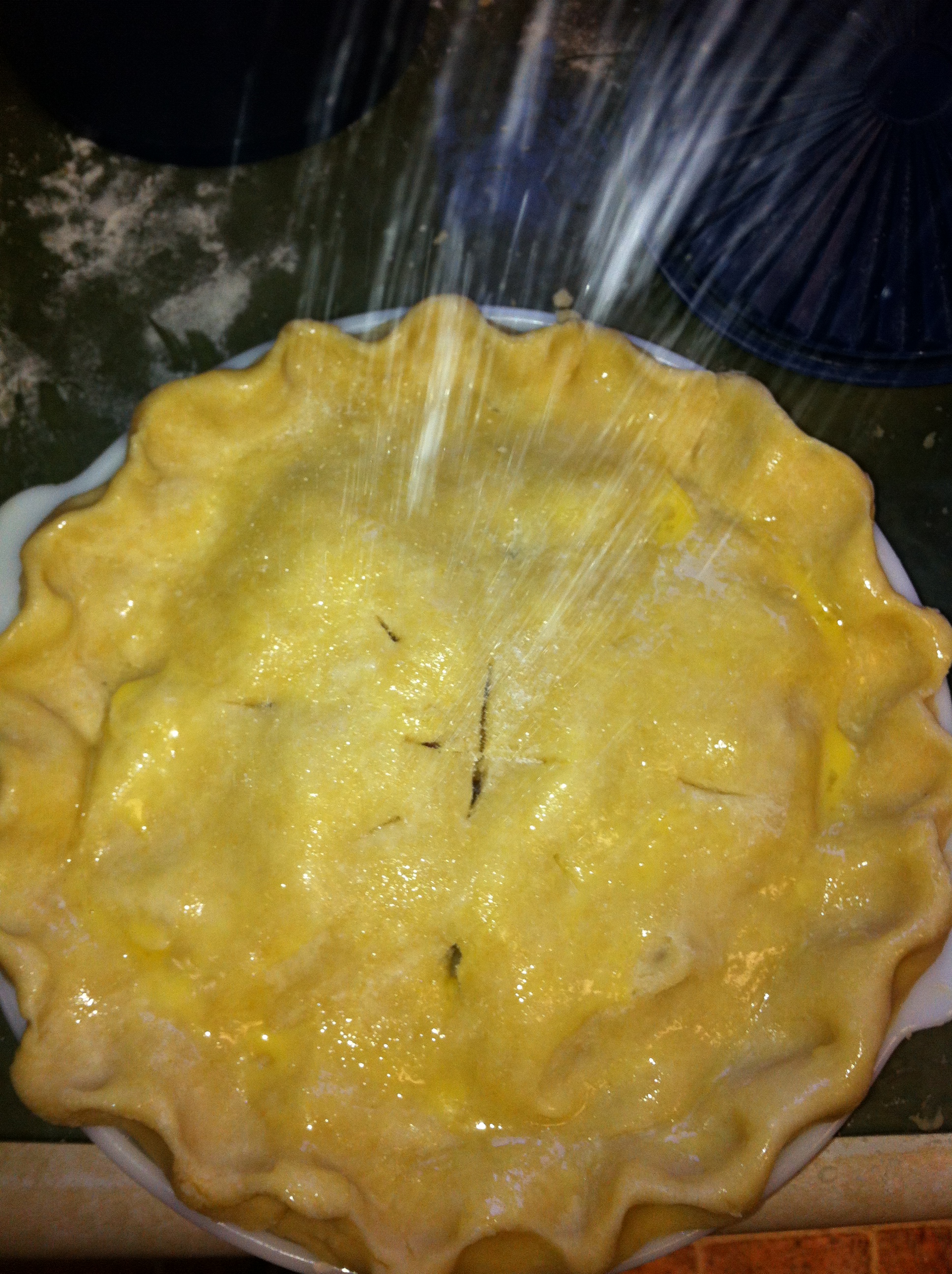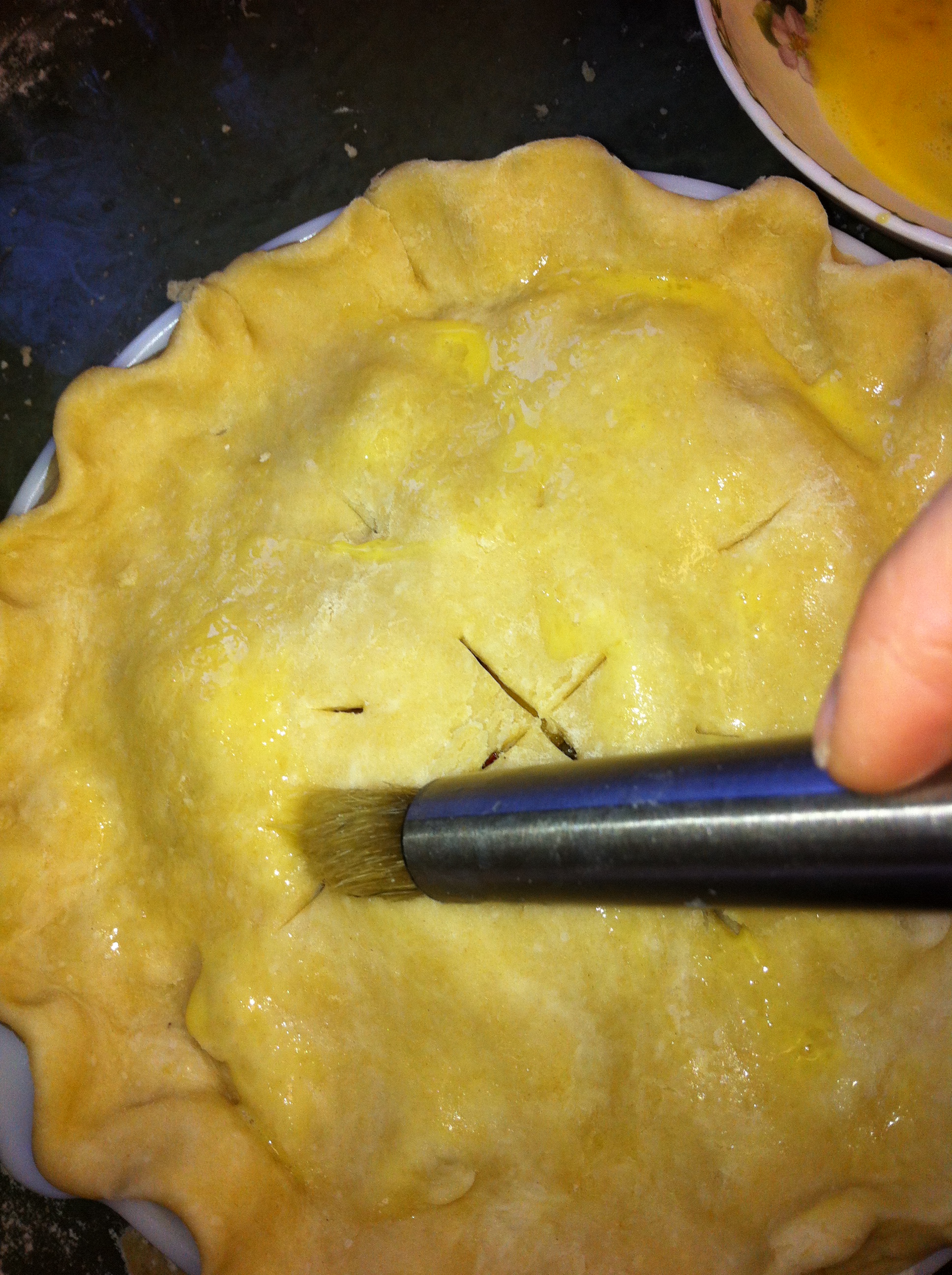 *Using a pastry brush, brush on the egg wash lightly and evenly over the top of the pie.