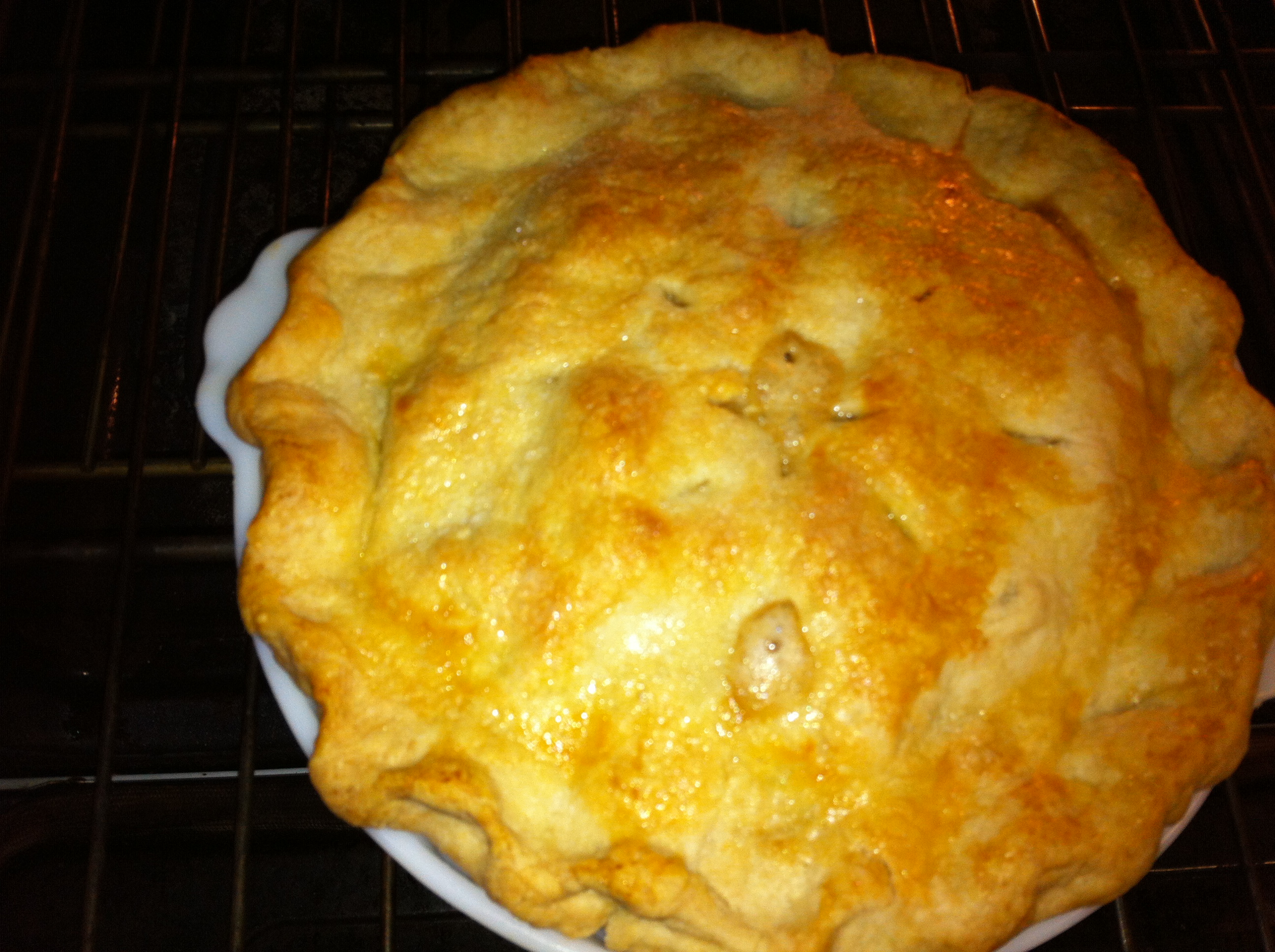 *Then I checked her. I placed a sheet of foil on the top to keep the crust from browning or burning and baked another 15 minutes or so.