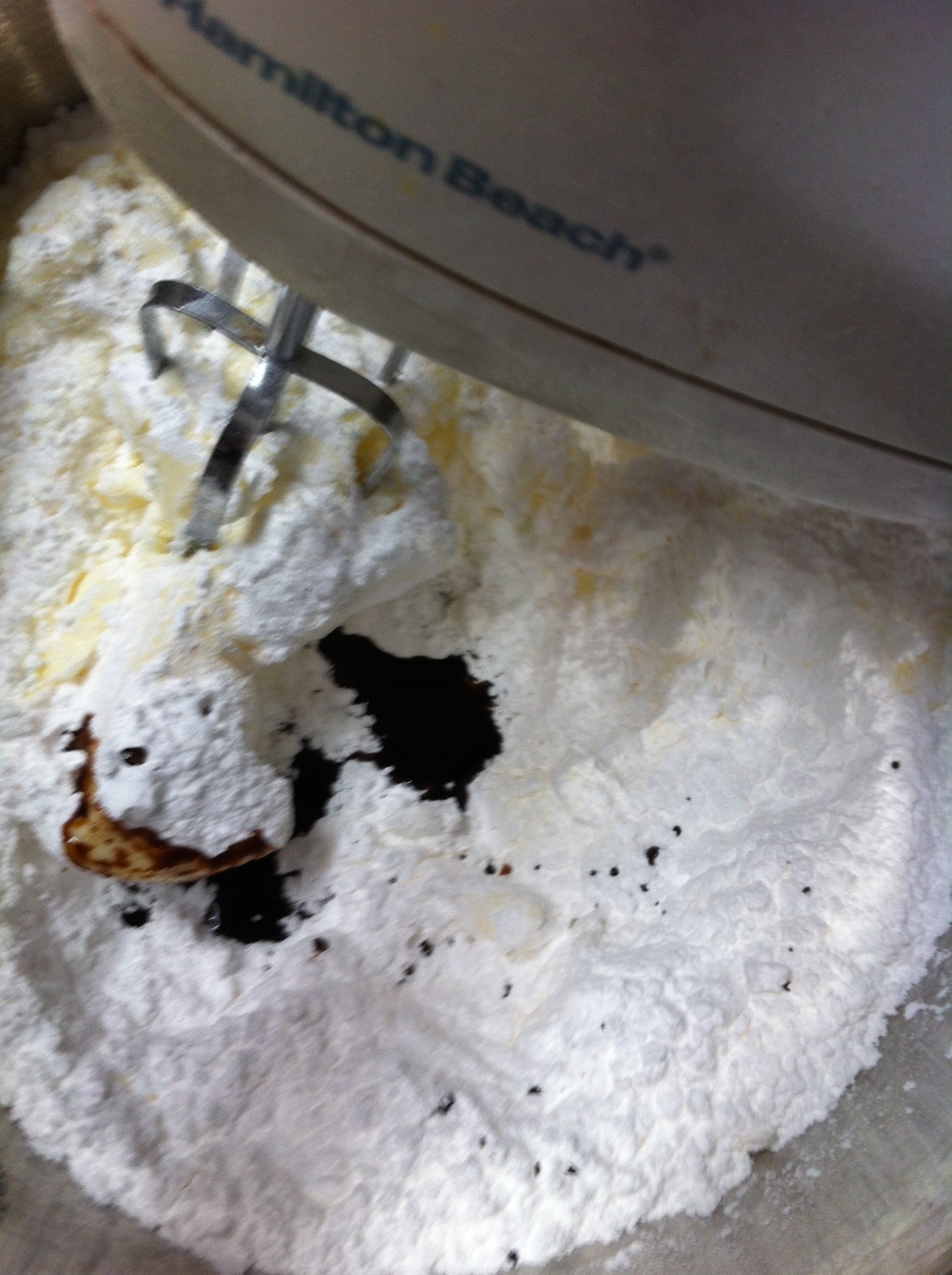 In a large mixing bowl, whip the butter, powdered sugar and vanilla/coffee mixture starting off on low and working up to a high speed for 5 minutes, stopping once or twice to scrape the sides of the bowl. It will be light and fluffy!