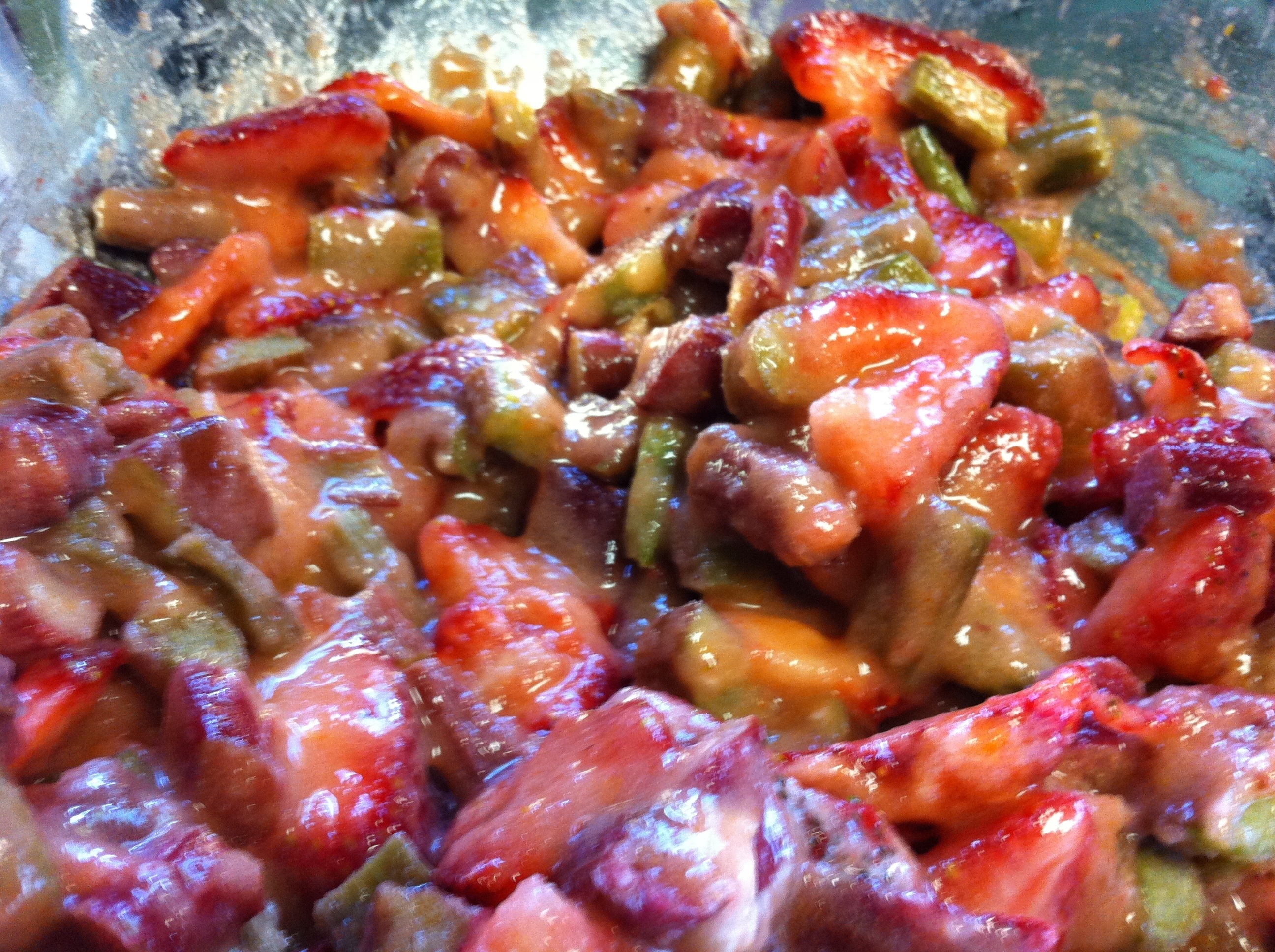 *The total amount of fruit should equal 6 cups. If you would like the ratio of rhubarb to strawberries to change, that is fine, just make sure that there are 6 cups of fruit total.