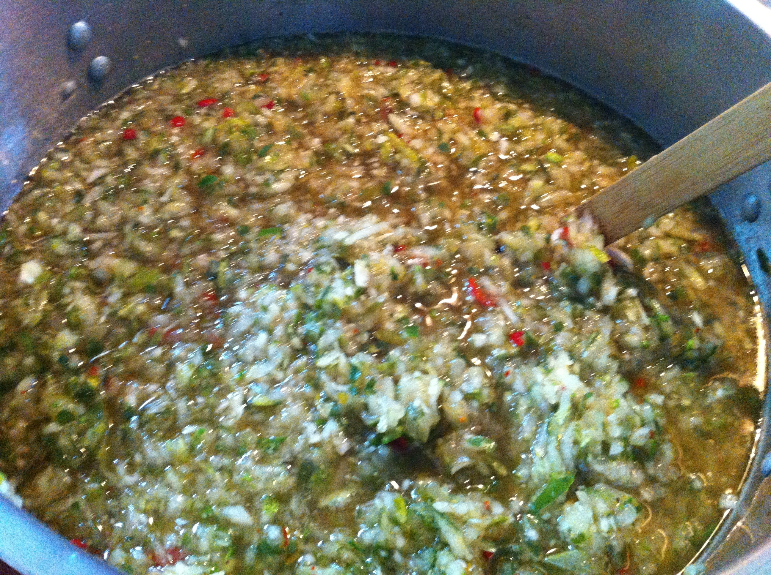 Chop, mince, or shred the onions, garlic and peppers. {Sorry, no picture of this today. I was apparently in the chopping zone!}