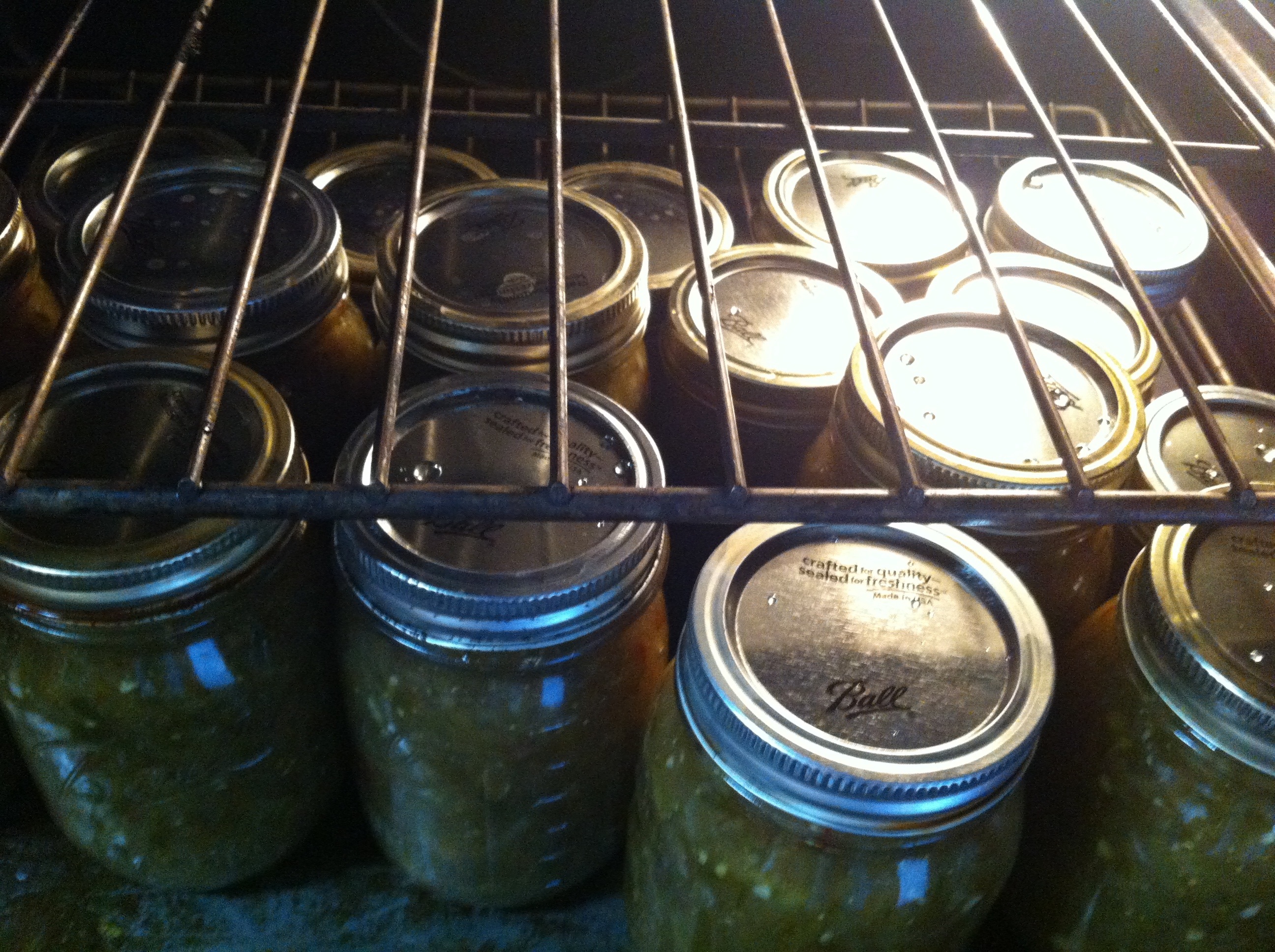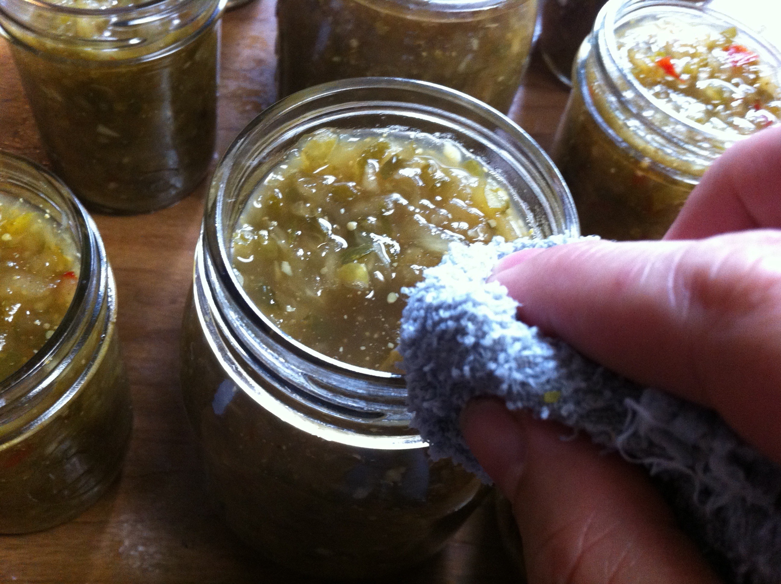 I also went ahead and filled up all of my jars this way and then placed them back in the 170 degree oven until they were ready to be processed in the hot water bath.