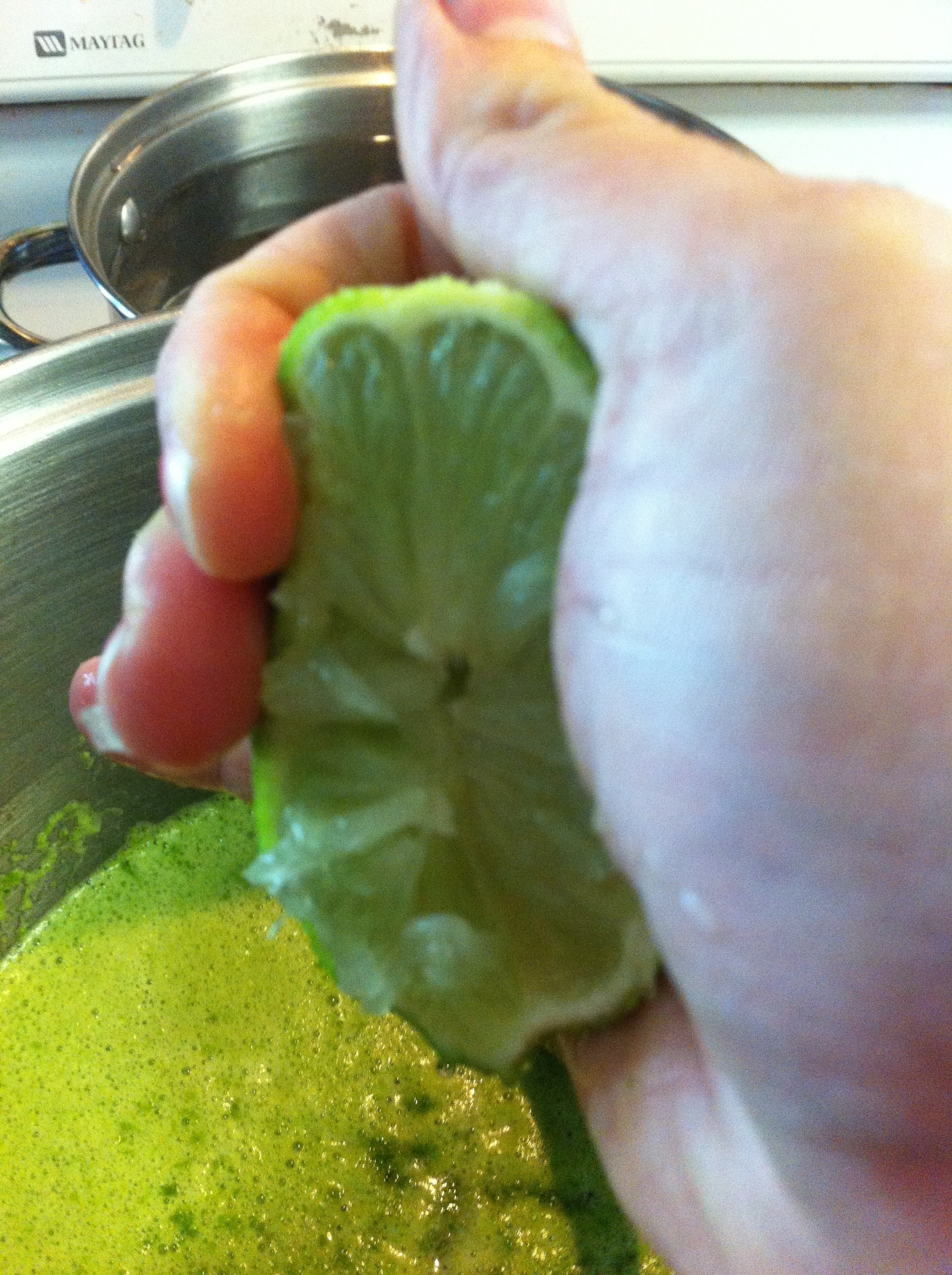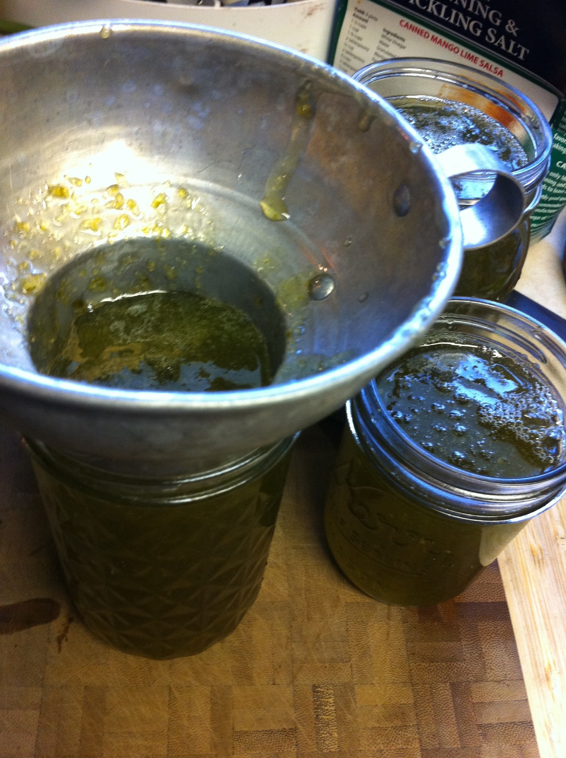 I found the basic recipe that I am using from The Ball Blue Book Guide to Preserving , with a couple of additions from me. In one batch I added a couple of banana peppers that we have in plenty as well right now, cause I didn’t think it could hurt. Also, what doesn’t benefit from a pinch of salt? That went in as well. The addition of lime zest and juice I thought would taste great and add another flavor dimension to this jelly.