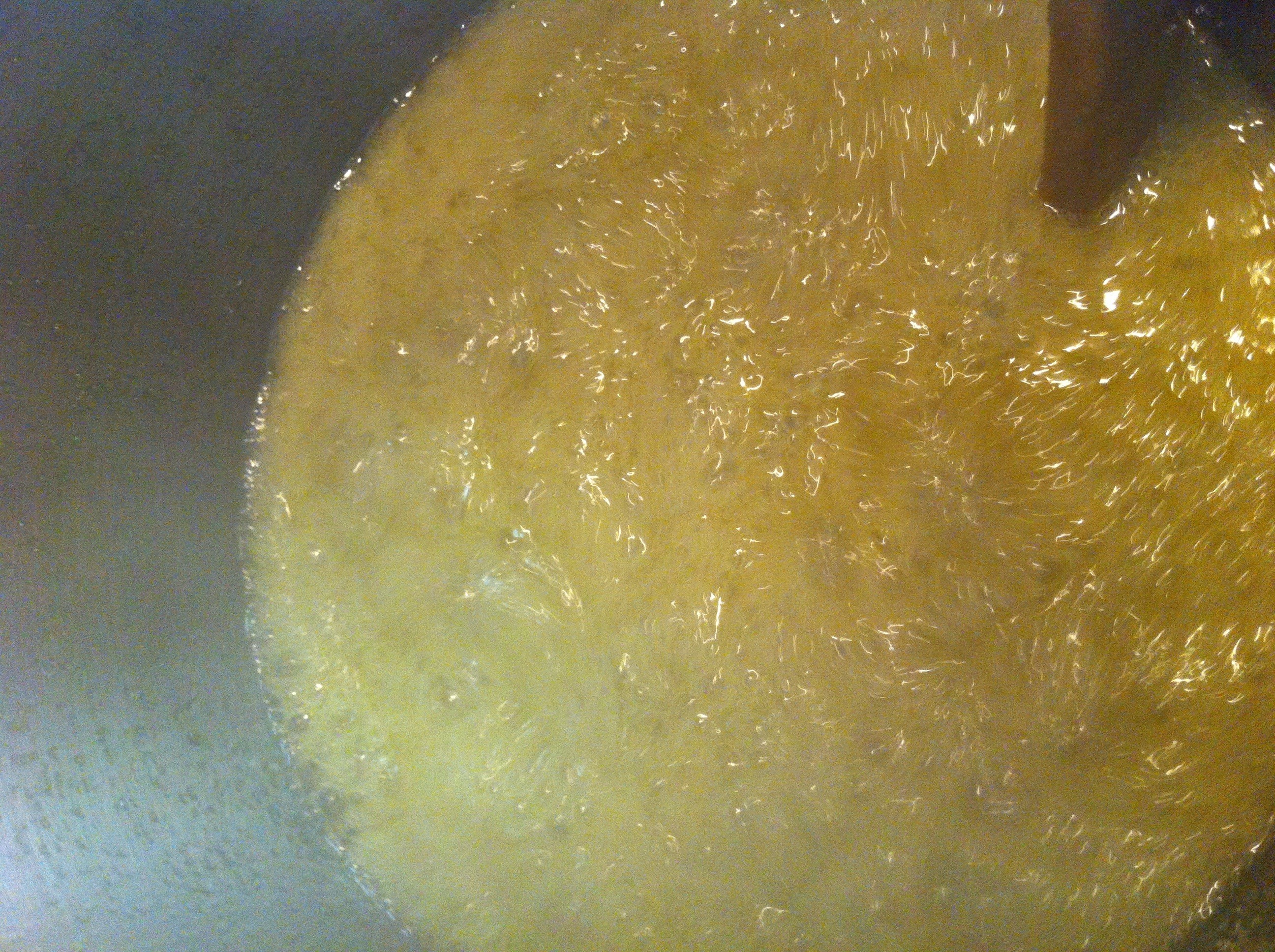Remove from heat and skim off foam, if desired. I didn’t skim it off because I didn’t think it would really matter in the end.