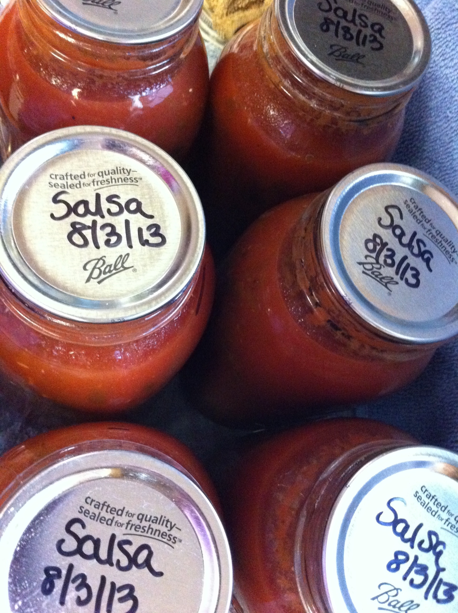The canning has begun! I processed my first batch of salsa today in the canner. I unfortunately haven’t been able to make any salsa before today because I have been waiting for enough of the tomatoes to ripen up at the same time to make a batch…so today was the day!