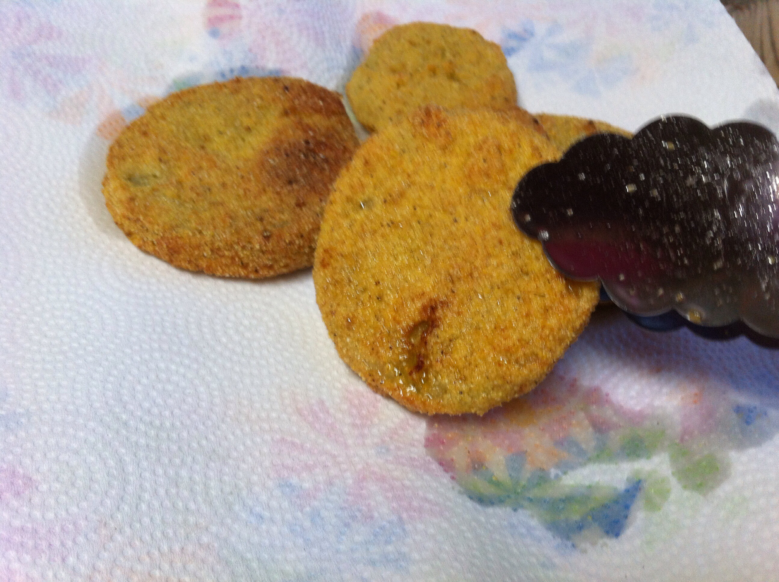 Place cooked tomatoes on a paper towel lined plate and continue process until all slices are fried up.