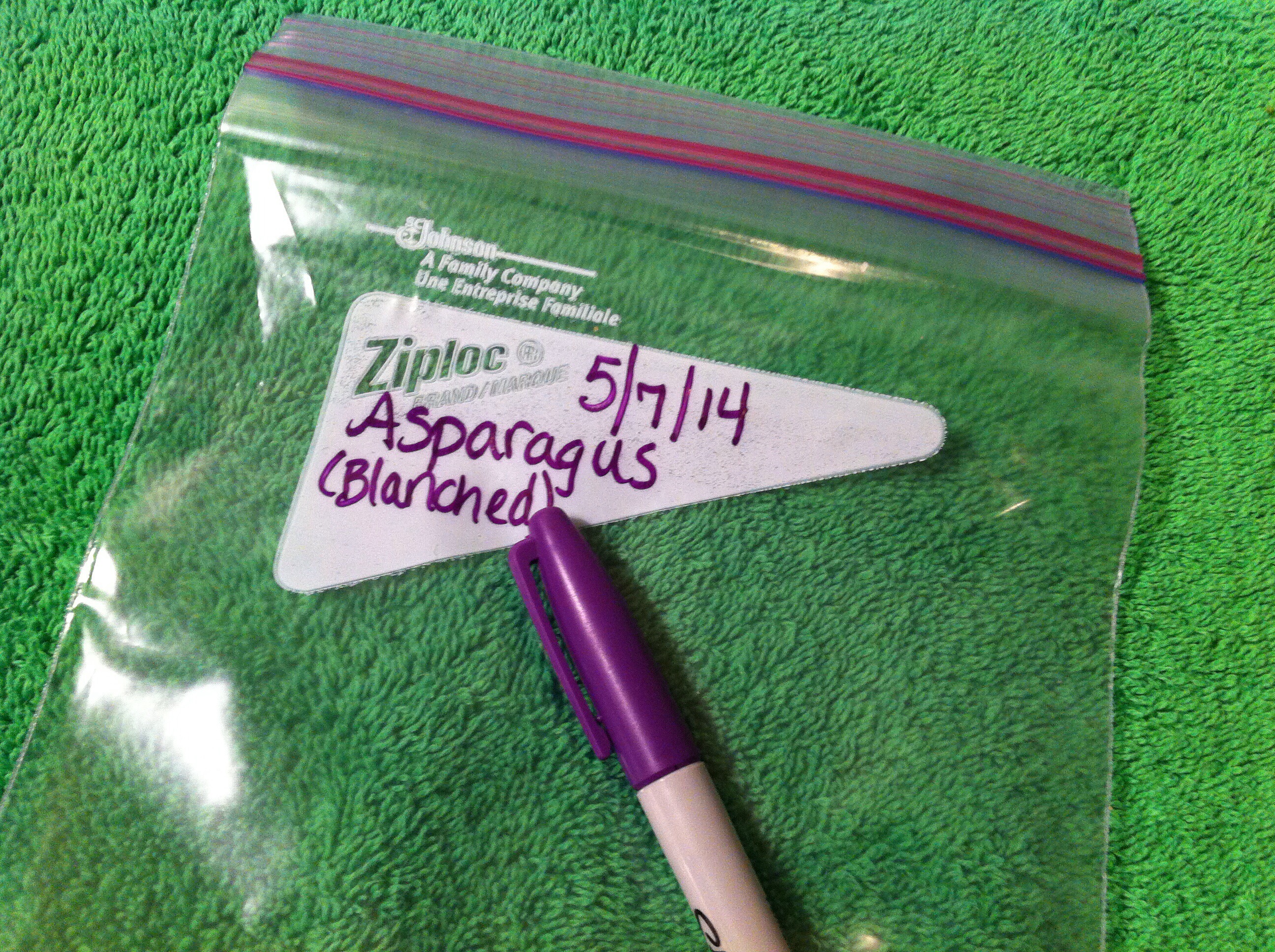 Label and date a freezer bag and place asparagus in it for later use. Enjoy!
